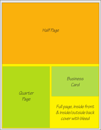 Full-color advertisements are available in quarter-page size up to a full-page ad.